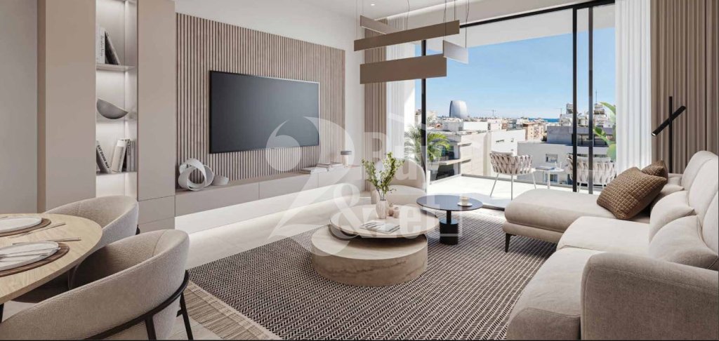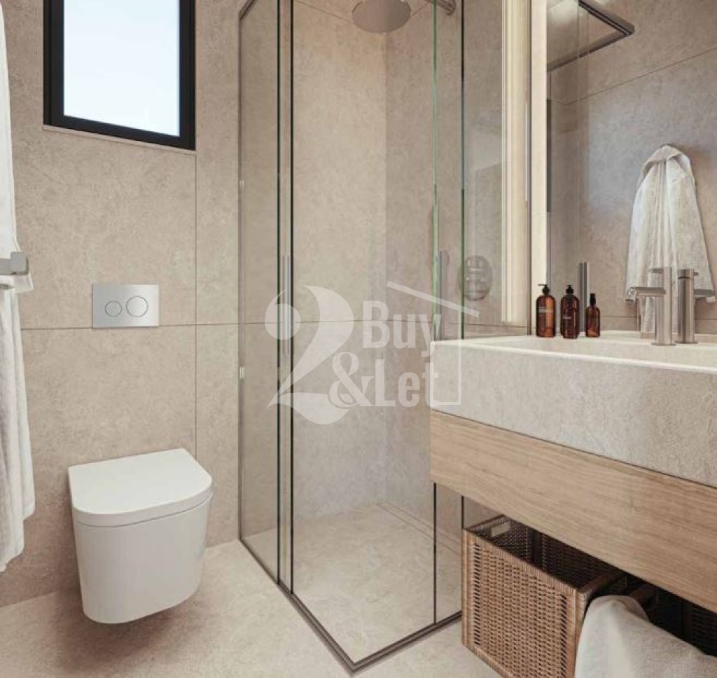 Located on the 1st floor, the apartment spans an 84m² internal area, complemented by a spacious 24m² covered veranda. Highlights include an open-plan kitchen, a luxurious ensuite master bedroom, and high-end features such as underfloor heating, VRV climate control, and electric shutters in the bedrooms. Sustainability is prioritized with individual solar photovoltaic panels and advanced thermal insulation.