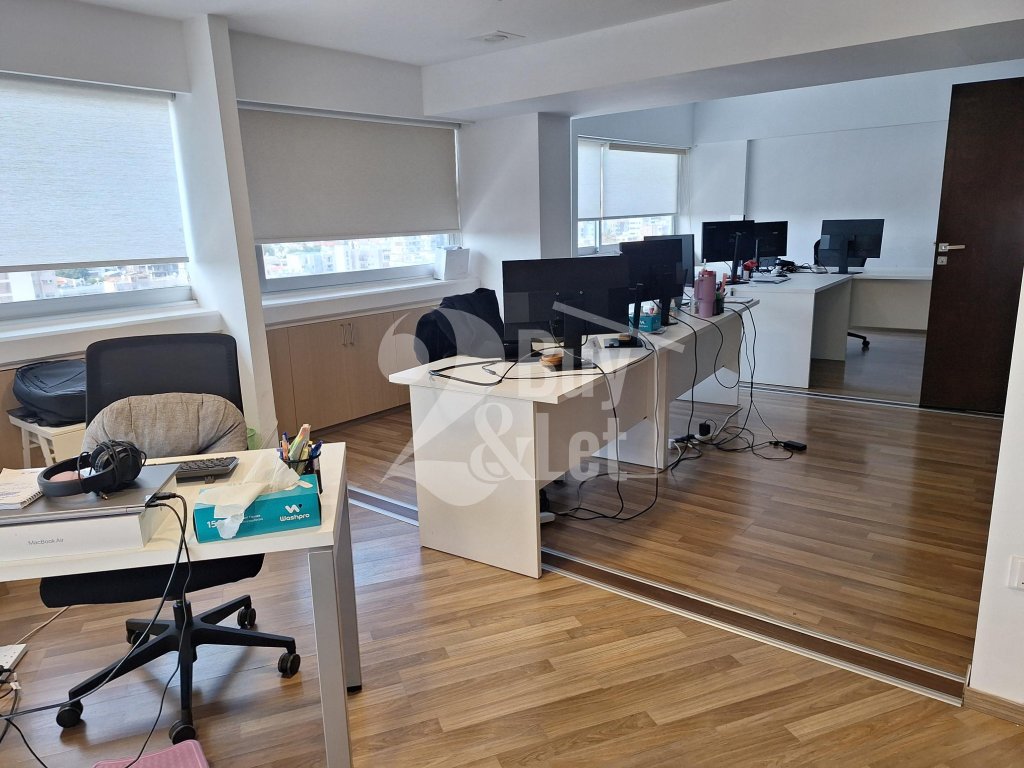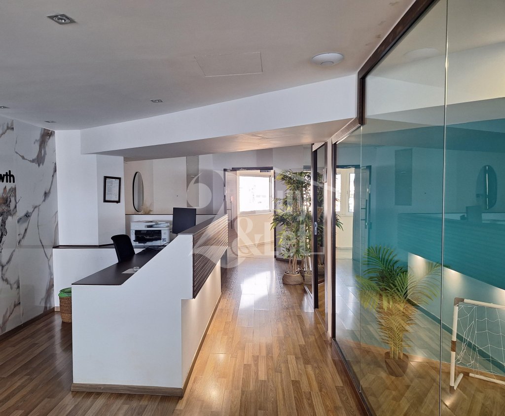 Spacious 376 sq.m renovated office located on the 9th floor of the prestigious Nicolaou Pentadromos Center. The layout includes 9 private offices, reception area, storage, server room, kitchen, and 2 toilets. Comes with 4 basement parking spaces, plus ample public parking around the building. Offered at €9,000/month with a minimum 2-year lease — ideal for established companies seeking a professional, high-profile workspace.