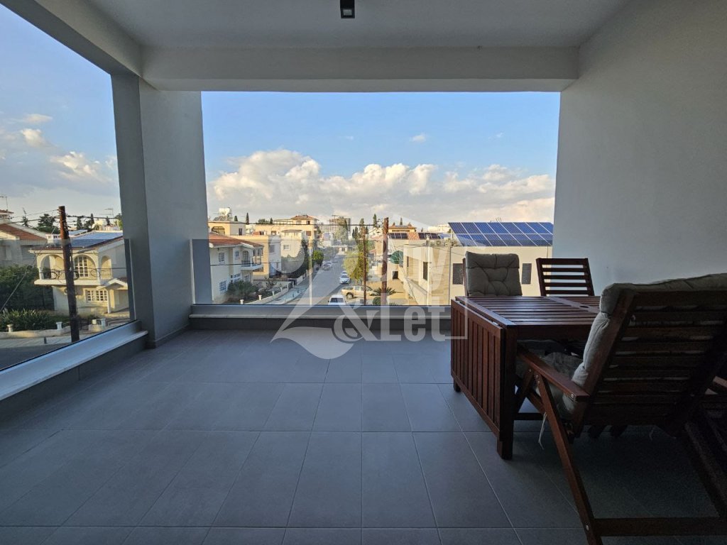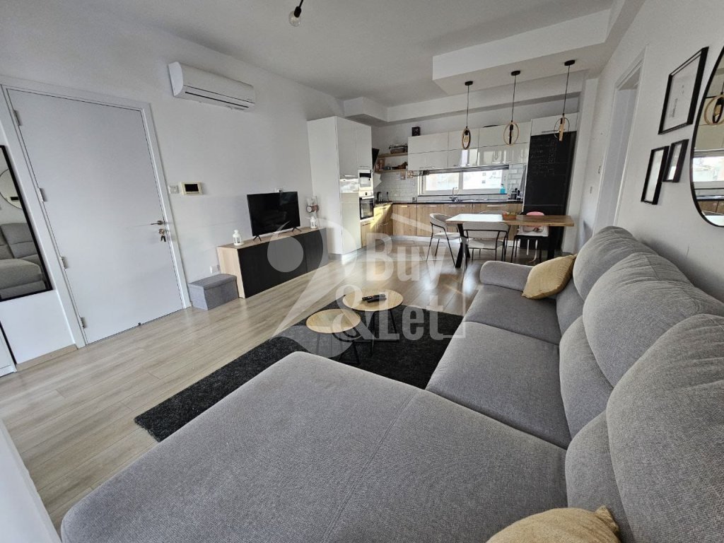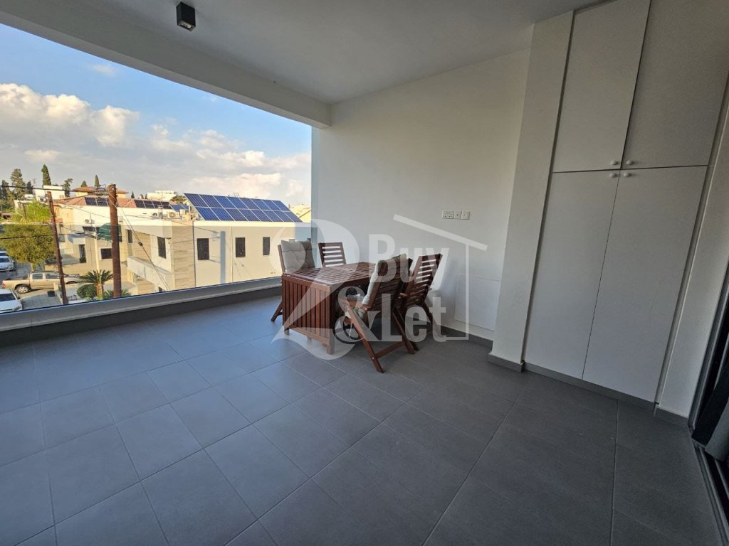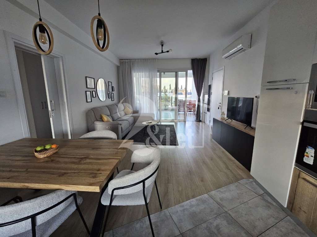 Fully furnished and equipped modern 2-bedroom apartment with a large covered veranda in a prime Larnaca location, steps from Metropolis Mall and the New Hospital.