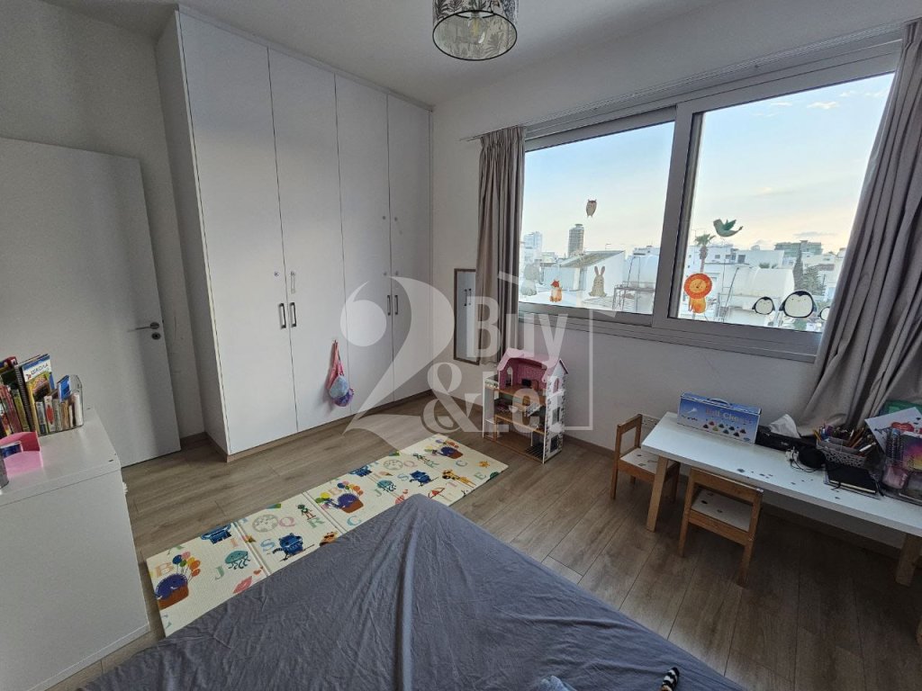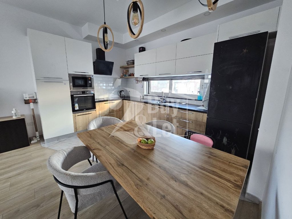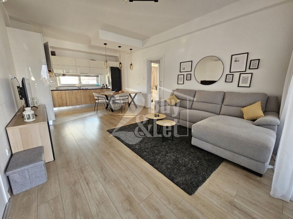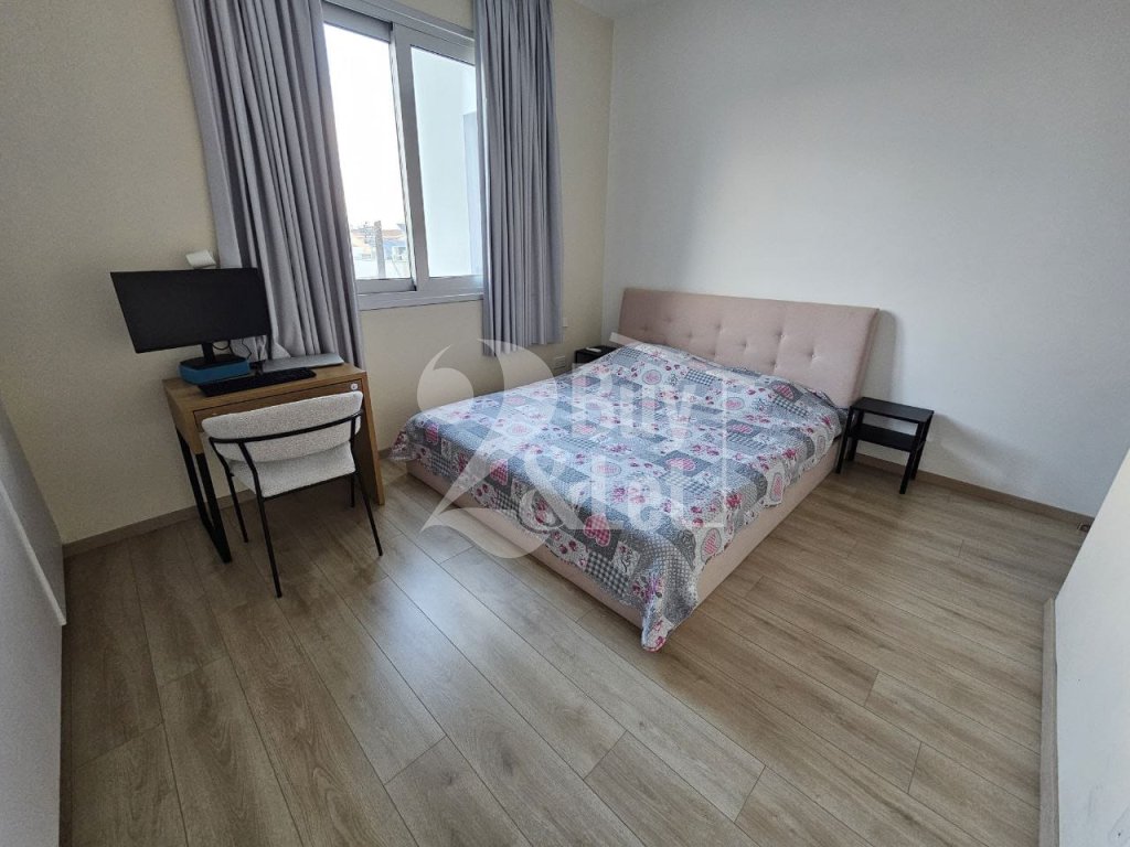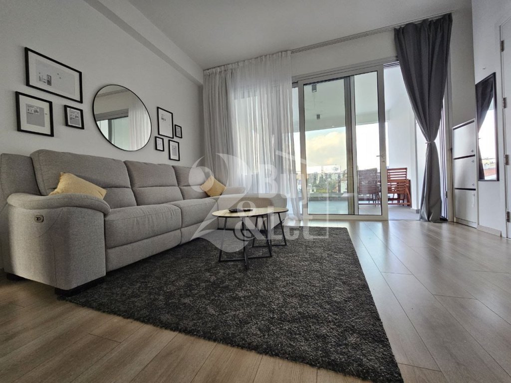 Fully furnished and equipped modern 2-bedroom apartment with a large covered veranda in a prime Larnaca location, steps from Metropolis Mall and the New Hospital.